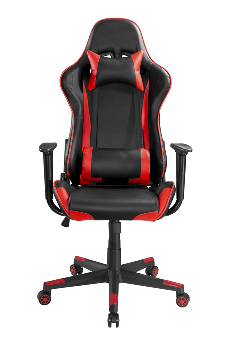 Brateck PU Leather Gaming Chairs with Headrest and Lumbar Support (70x70x127~137cm) Up to 150kg - PU Leather,PVC Leather-Black Red