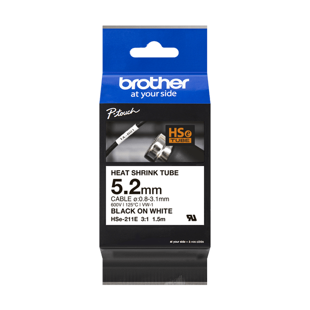 Brother HSE-221E 9.0MM BLACK ON WHITE HEAT SHRINK TUBE CATRIDGE 3:1 (compatible with PT-E300VP/E550WVP/D800W/P750W/P900W/P950NW)