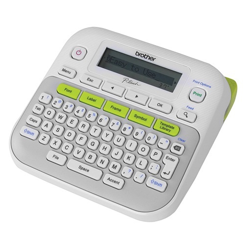 Brother PT-D210 labeller with one touch keys to quickly access 14 fonts, over 600 symbols and 98 frames making label printing a breeze. The fast and easy to use PT-D210 labeller prints laminated labels 3.5, 6, 9 and 12mm wide for durable and professional results. Quickly and easily create stylish labels using 27 pre-designed layouts and preview your label with the graphical display before printing. From labelling file folders and cables and wires to making gift tags and scrapbook pages, there are more uses than ever for the PT-D210.