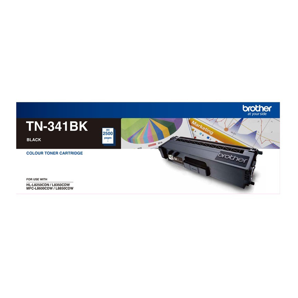 Brother TN-341BK Colour Laser-Standard Yield Black Toner to suit HL-L8250CDN/8350CDW MFC-L8600CDW/L8850CDW - 2500Pages