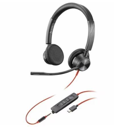 Poly Blackwire 3325 Wired On-ear Stereo Headset - Black - Microsoft Teams Certification - Binaural - Ear-cup - 32 Ohm - 213.4 cm Cable - Omni-directional Microphone - USB Type C, Mini-phone (3.5mm)