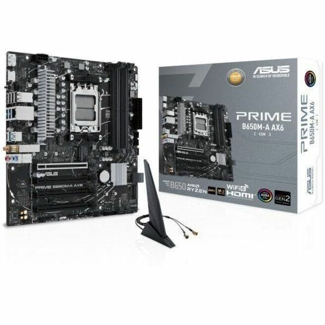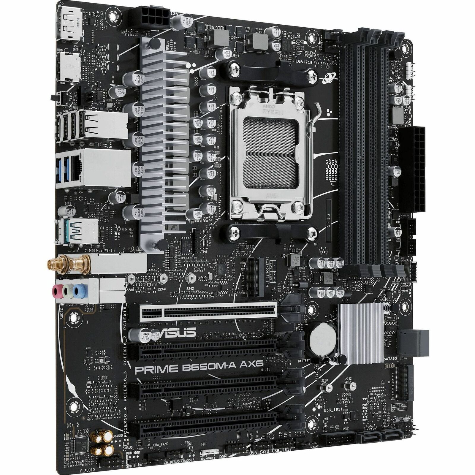 Asus Prime PRIME B650M-A AX6-CSM Gaming Desktop Motherboard - AMD B650 Chipset - Socket AM5 - Micro ATX - Ryzen 7 Processor Supported - 192 GB DDR5 SDRAM Maximum RAM - DIMM, UDIMM - 4 x Memory Slots - Gigabit Ethernet - IEEE 802.11 a/b/g/n/ac/ax - HDMI - DisplayPort - 4 x SATA Interfaces