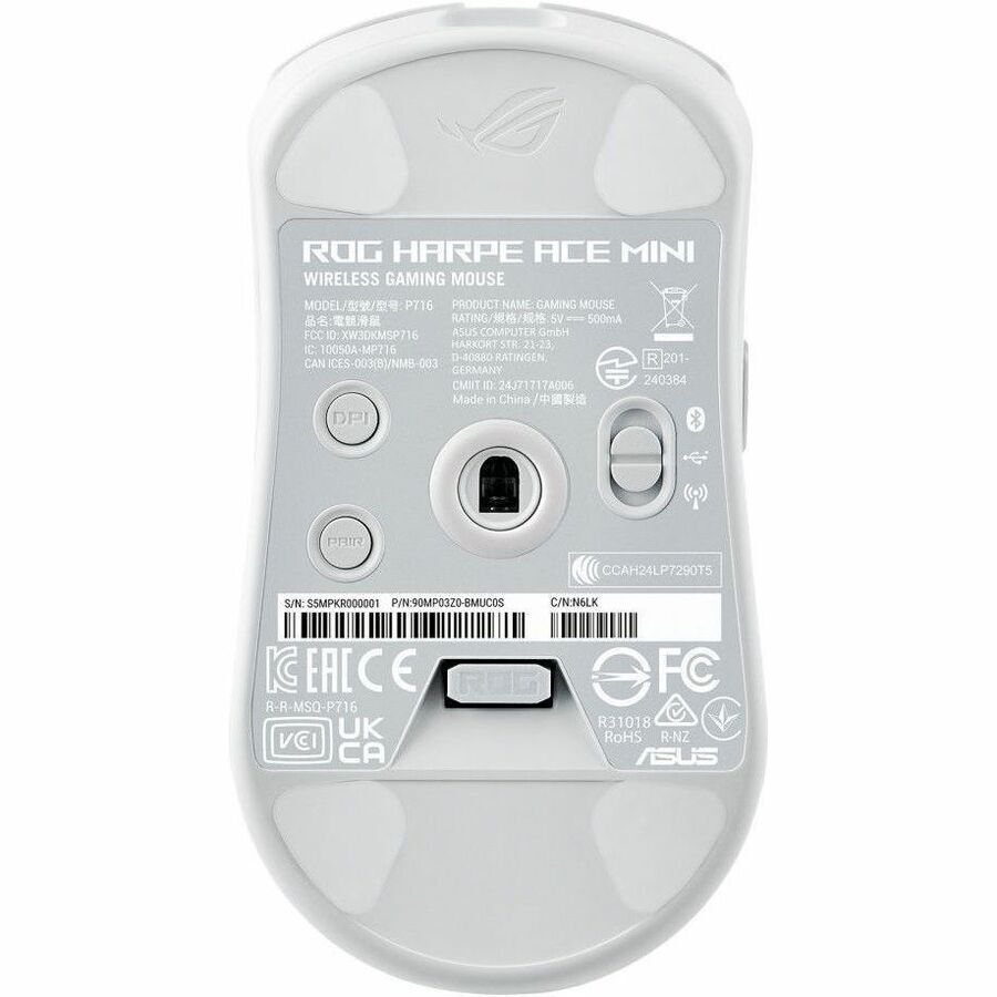 ROG Harpe Ace Mini is an ultralight 49-gram semi-symmetrical 8K Hz wireless polling rate gaming mouse with a shape approved by pro FPS players. Tri-Mode connectivity 42 000-dpi