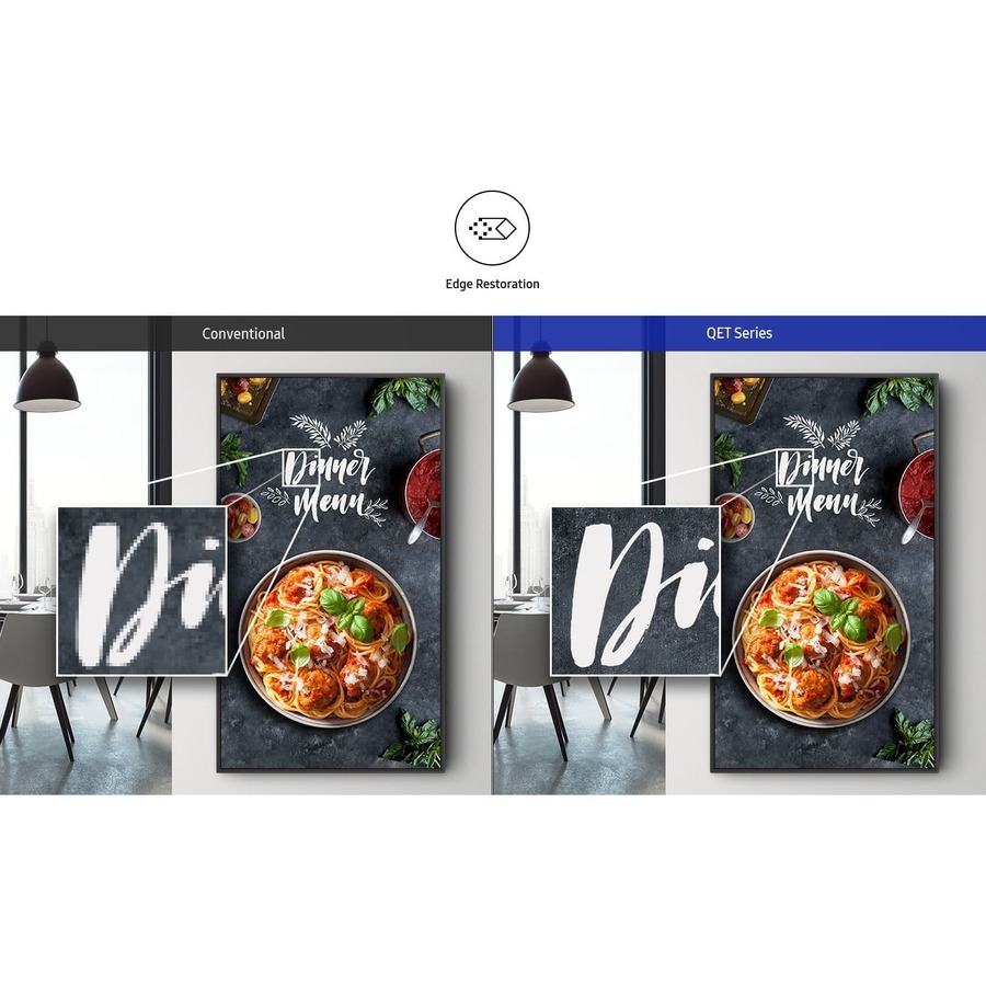 Samsung's QET series features intelligent upscaling technology that displays all content in eye-catching UHD resolution along with a boundless design and simple content management features.