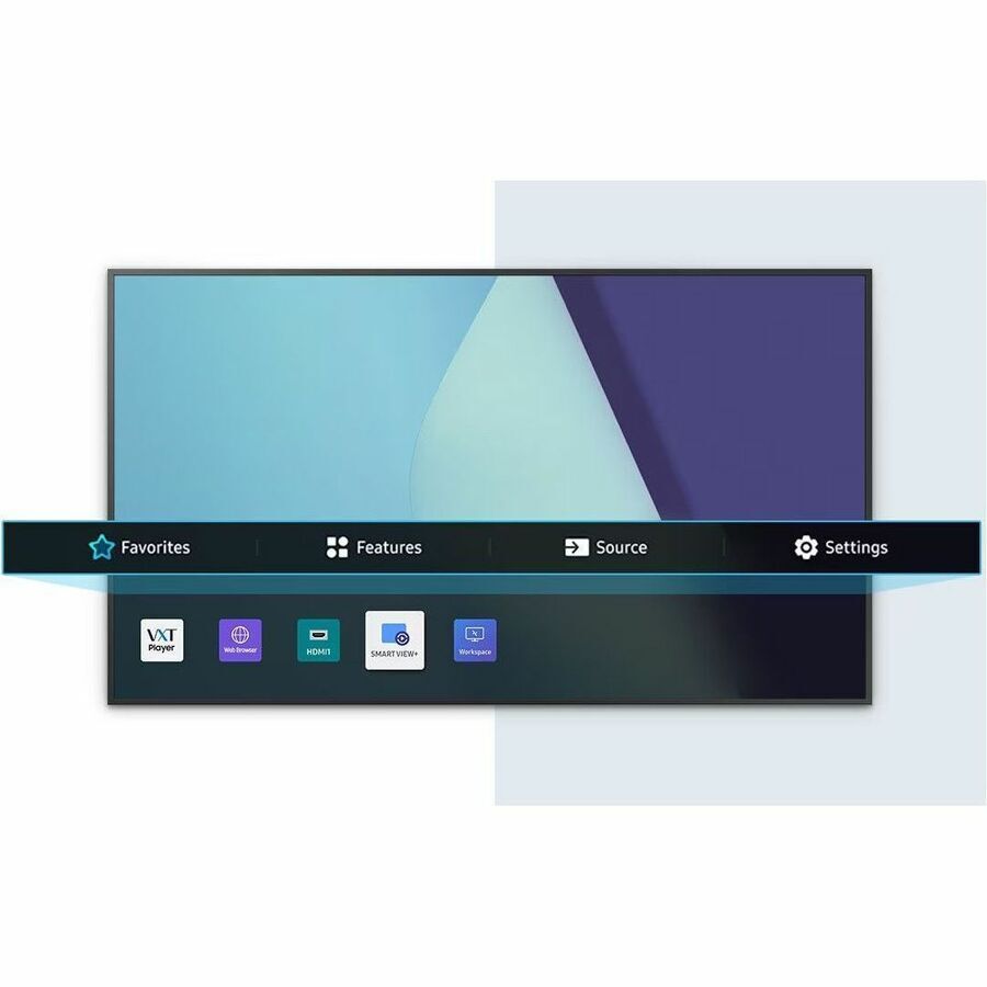 SmartView+ enables wireless screen sharing without cable connections to assist with easy collaboration. Users can now enable the screen sharing functionality at the start of a meeting, allowing the meeting admin to quickly switch between screens with one click.