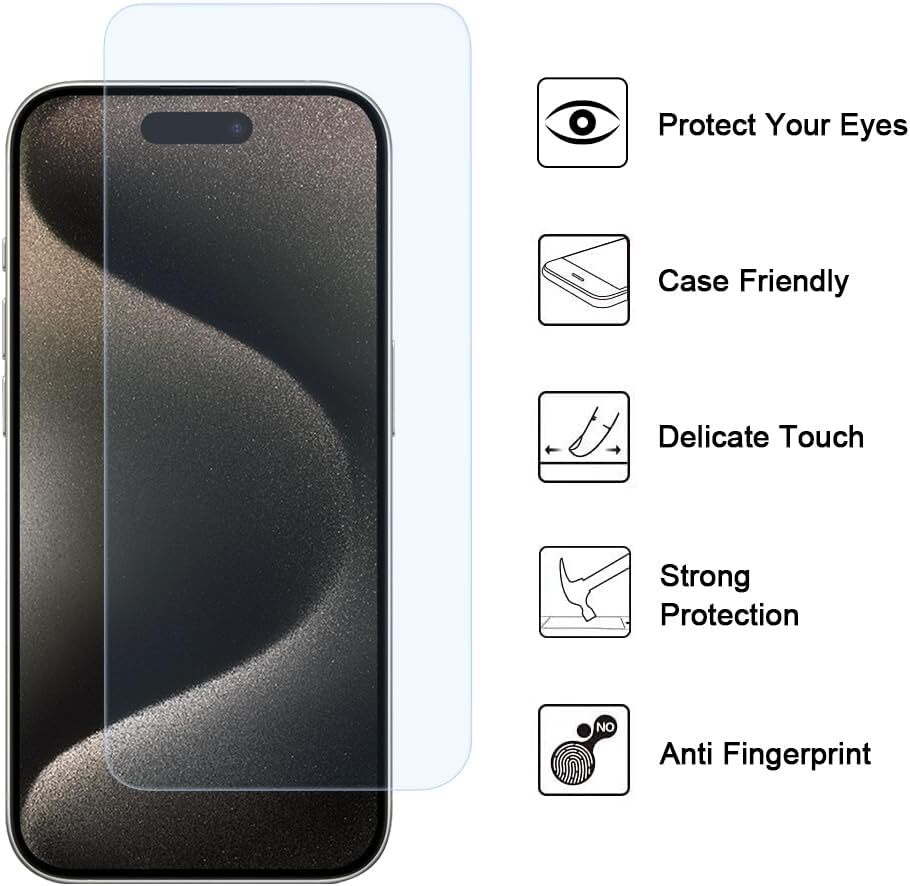Nuglas Screen Protector Anti Blue Clear Tempered Glass For iPhone 15 Pro Max/ 15 Plus/ iPhone 16 Plus