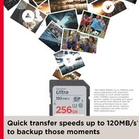 - Quick transfer speeds up to 120MB/s to backup those moments (For 32GB-256GB): Up to 120MB/s read speed, engineered with proprietary technology to reach speeds beyond UHS-I 104MB/s, require compatible devices capable of reaching such speed, Write speed lower, Based on internal testing; Performance may be lower depending on host device, interface, usage conditions and other factors, 1MB=1,000,000 bytes