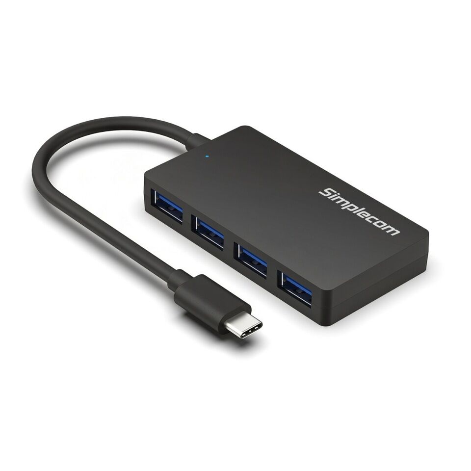 Simplecom CH350 SuperSpeed USB-C to 4xtUSB-A Hub USB 3.2 Gen1, 5Gbps, plug & play, bus-powered, ABS, 76×41×11mm, 35g, 15cm cable, Win/macOS compatibe Quick Overview •Converts a single USB-C port on your computer into four USB-A ports •Ultra-compact, lightweight, and portable design •Fully compliant with USB 3.2 specifications •Supports SuperSpeed data transfer up to 5Gbps (USB 3.2 Gen 1) •4 USB-A ports are backward compatible with USB 2.0 and USB 1.1 devices. •Plug and play, no driver installation needed •Powered via USB bus, no external power required •Compatible with Windows 7 and later, macOS 10.2 and later Easily convert your computer's USB-C with this ultra-compact USB-C to 4-Port USB-A Hub. Designed to turn a single USB 3.0 port into four, it's perfect for laptops and desktops that need extra ports for multiple USB devices. Its ultra-compact and lightweight makes it ideal for travel, while full compliance with USB 3.2 specifications ensures fast and reliable performance. It supports SuperSpeed data transfer rates of up to 5Gbps, and backward compatibility with USB 2.0 and 1.1 devices. No drivers or installation needed, just plug and play. The hub is powered directly from your computer's USB port, so there's no need for an external power supply. Its sleek, lightweight design makes it easy to carry, ideal for use at home, the office, or on the go. Features Converts a single USB-C port on your computer into four USB-A ports Ultra-compact, lightweight, and portable design Fully compliant with USB 3.2 specifications Supports SuperSpeed data transfer up to 5Gbps (USB 3.2 Gen 1) 4 USB-A ports are backward compatible with USB 2.0 and USB 1.1 devices. Plug and play, no driver installation needed Powered via USB bus, no external power required Compatible with Windows 7 and later, macOS 10.2 and later Specifications Model: CH350 Housing Material: ABS plastic Host Interface: USB 3.2 Gen 1 Type-C (USB-C) Output Ports: 4 × USB 3.2 Gen 1 Type-A (USB 3.0) Data Transfer Rate: Up to 5Gbps Maximum Output Power: 5V / 1A Operating Temperature: 0°C to 40°C Cable Length: 15cm approx. Dimensions: 76 × 41 × 11 mm (L × W × H) Weight: 35g approx. Important Notes This hub is intended for data transfer and is not designed to function as a standalone charger. It can charge only low-power devices, with a maximum output of 5W (5V/1A). This hub should only be used with a computer's USB port and should not be connected to any USB wall charger.