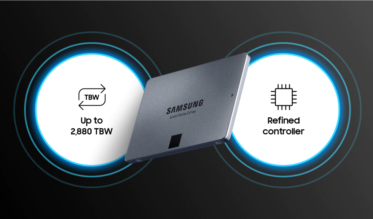 The groundbreaking capacity of the 870 QVO doubles its reliability up to 2,880 TBW compared to the previous model 860 QVO and is backed by a limited of 3 years. This formidable SSD provides further reliability with a refined ECC algorithm that enables a stable performance.