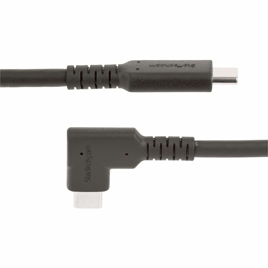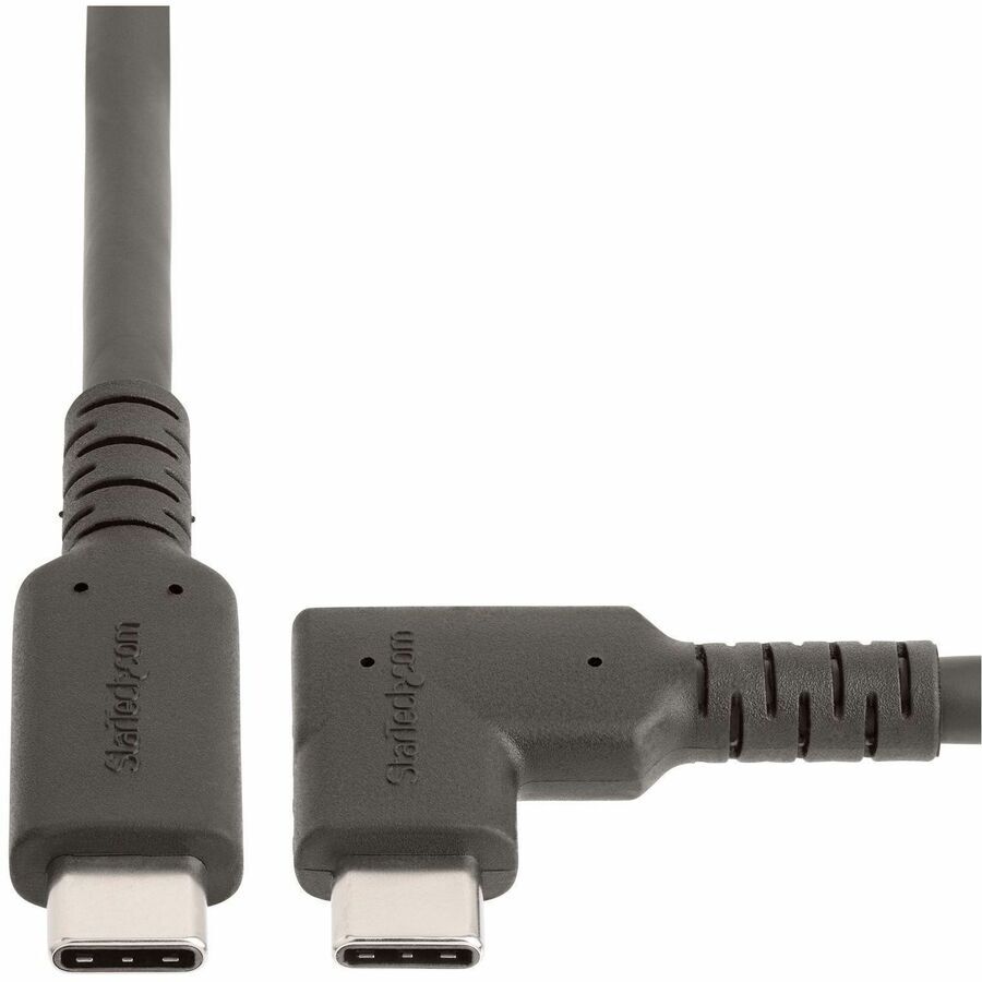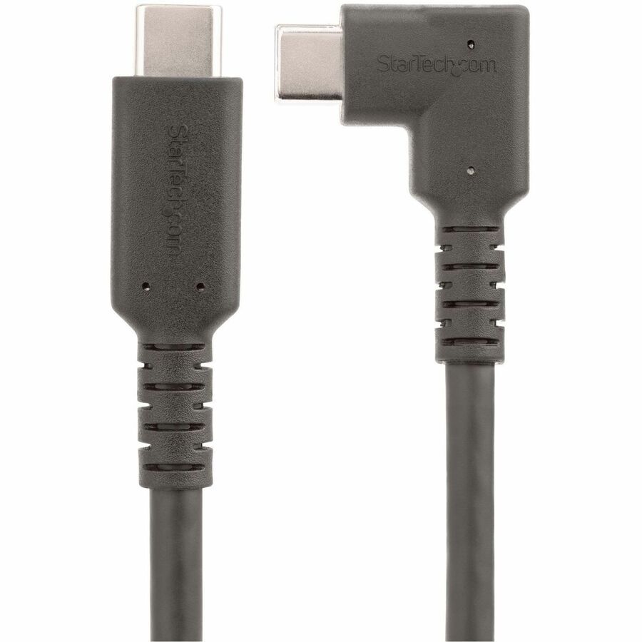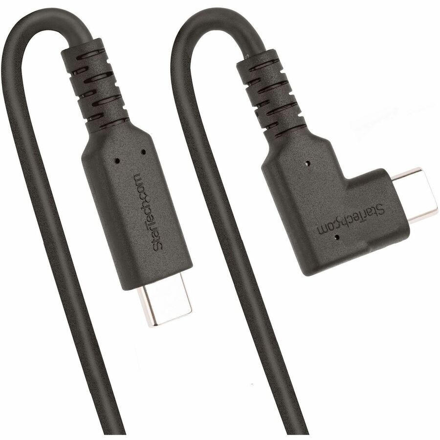 StarTech.com 1.6ft (50cm) Rugged Right Angle USB-C Cable, USB 3.2 Gen 2 (10 Gbps), USB C to C Data Transfer Cable, 100W PD, 4K 60Hz, 90 Degree USB-C Cable - Rugged Right Angle USB-C Cable is ideal for connecting in tight spaces; Minimize strain from bending and deliver full USB-C features; 1.6ft (50cm); Black; 4.8mm O.D.; USB 10 Gbps; 4K 60Hz DP Alt Mode; 100W PD; Durable TPE jacket w/ Aramid sheath