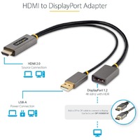 StarTech.com 1ft (30cm) HDMI to DisplayPort Adapter, 4K 60Hz HDR HDMI Source to DP Monitor, USB Bus Powered, HDMI 2.0 to DisplayPort 1.2 - 1ft HDMI to DisplayPort Adapter converts and boosts any HDMI 2.0 source to a DP 1.2 output; Supports up to 3840x2160 60Hz HDR, HDCP 2.2, 2ch audio, Ultrawide resolutions; HDMI 2.0 to DP Converter features a 1ft USB-A power cable; OS Independent