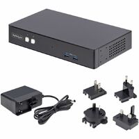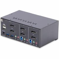 StarTech.com 2-Port Dual-Monitor DisplayPort KVM Switch, 4K 60Hz, 2x USB 5Gbps Ports, Hotkey/Push-Button Switching, TAA Compliant - KVM Switch features USB Emulation enabling fast switching of a keyboard/video/mouse between 2x DisplayPort/USB-A enabled desktops; Dual 4K 60Hz DP monitors; 2x USB 5Gbps Ports; 2x USB 2.0 Ports; Hotkeys or Push-Button Switching; TAA Compliant