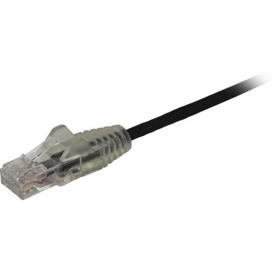 StarTech.com 2.5 m CAT6 Cable - Slim CAT6 Patch Cord - Black - Snagless RJ45 Connectors - Gigabit Ethernet Cable - 28 AWG (N6PAT250CMBKSS) - Slim CAT6 cable is 36% thinner than a standard CAT 6 network cable - Patch cable is tested to comply with Category 6 requirements - Snagless connectors provide a secure Gigabit Ethernet connection - Built with 28 AWG Copper Wire - LSZH Certification