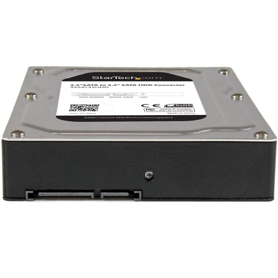 The 25SAT35HDD 2.5" to 3.5" hard drive adapter enclosure turns a 2.5" SATA hard drive (HDD) or solid state drive (SSD) into a 3.5" drive.