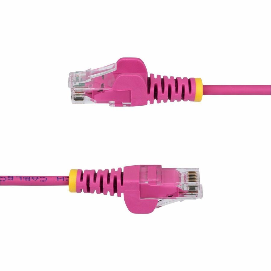 StarTech.com 2.5m Pink Slim CAT6 Ethernet Cable, Snagless RJ45, UTP, LSZH, 28AWG Pure Bare Copper, Slim Network Patch Cord, Fluke Tested - Slim UTP Cat6 Cable supports 1Gbps and 100W PoE; Ideal for crowded installations; 36% slimmer for improved airflow; Low Near-End Crosstalk (NEXT) and Return Loss (RL); Gold-Plated Contacts; 28AWG Pure Bare Copper Wire; LSZH jacket; Fluke Tested