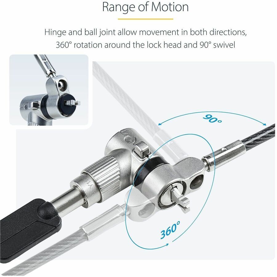 StarTech.com 25-Pack Universal Laptop Lock 6.6ft, Keyed Alike Locking Cable, Security Cable, Compatible w/Noble Wedge®/Nano/K-Slot - 25-Pack keyed alike universal laptop lock compatible w/ Noble Wedge®/K-Slot/Nano security slots; Adjustable lock tip; Cut-resistant steel cable 6.6ft long, 0.17in thick; 360 Deg. lock head rotation/90 Deg. pivot; Lock withstands 217lb pull force