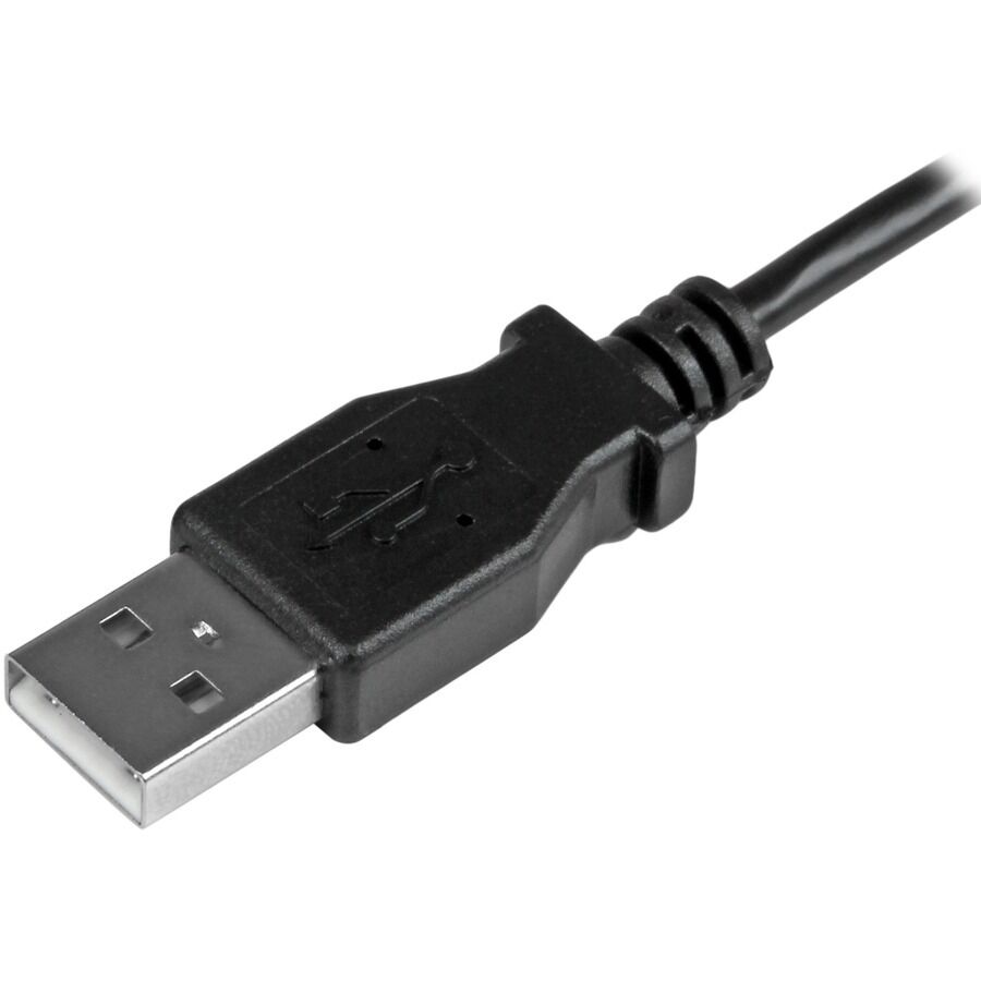 StarTech.com 2m 6 ft Left Angle Micro-USB Charge-and-Sync Cable M/M - USB 2.0 A to Micro-USB - 24 AWG - First End: 1 x 4-pin USB 2.0 Type A - Male - Second End: 1 x 5-pin Micro USB 2.0 Type B - Male - 480 Mbit/s - Shielding - Nickel Plated Connector - 24/30 AWG - Black