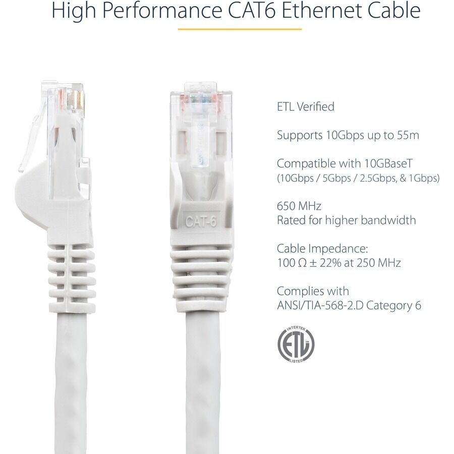 StarTech.com 2m CAT6 Ethernet Cable - White Snagless Gigabit - 100W PoE UTP 650MHz Category 6 Patch Cord UL Certified Wiring/TIA - First End: 1 x RJ-45 Network - Male - Second End: 1 x RJ-45 Network - Male - 6 Gbit/s - Patch Cable - Gold Plated Contact - 24 AWG - White