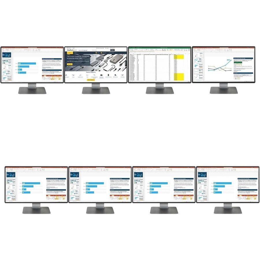 This MST hub lets you connect four monitors to your DisplayPort™ (DP) 1.2 equipped Windows® laptop or desktop.
