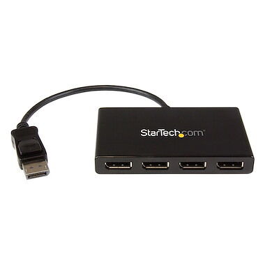 StarTech.com 4-Port DisplayPort 1.2 Splitter, DisplayPort to 4x DP Multi-Monitor Adapter, Quad 1080p 60Hz Computer MST Hub, Windows Only~4-Port Multi Monitor Adapter, DisplayPort 1.2 MST Hub, 4x 1080p, DP Video Splitter for Extended Desktop Mode, Windows Only - 4-port DisplayPort multi-monitor adapter drives 4x 1080p 60Hz DP displays to extend or mirror your desktop; DP 1.2/HBR2/MST; MST Hub/video splitter w/latching DP connector; Universal Power Adapter included; No Drivers / Windows only