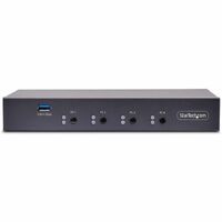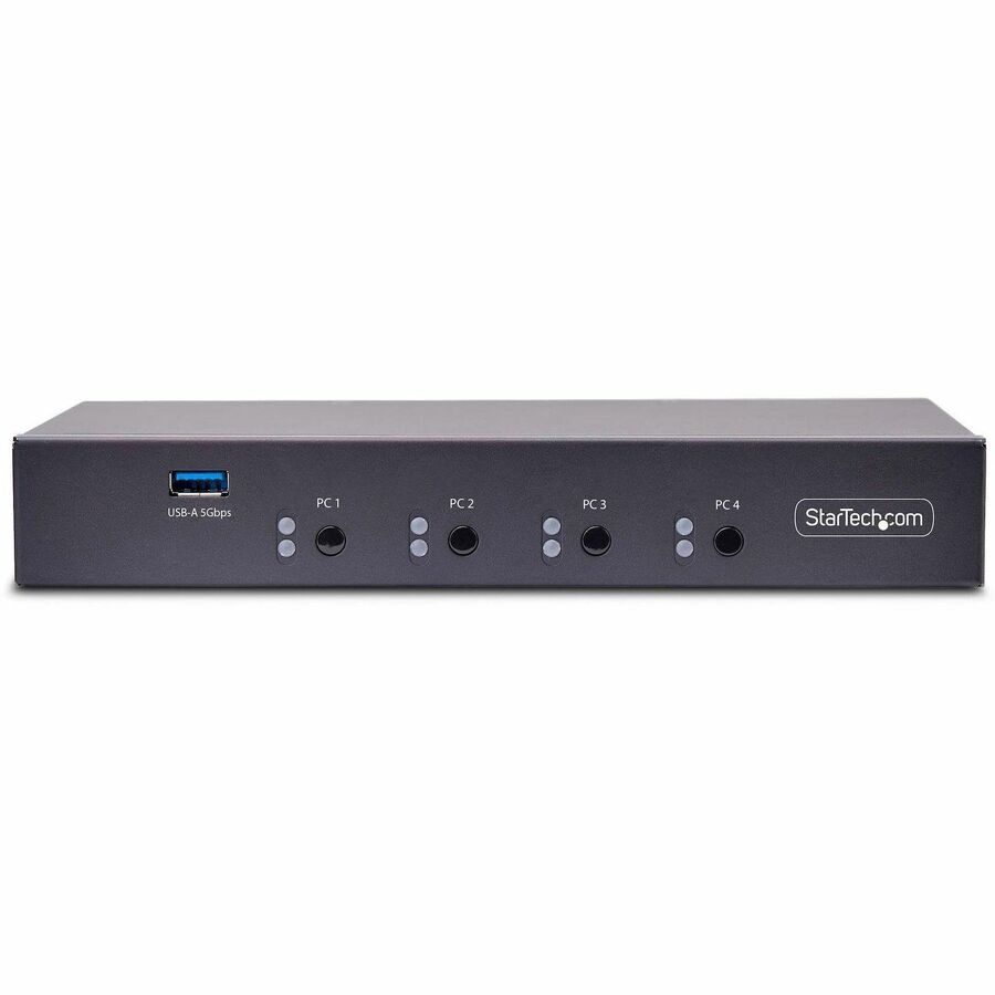 StarTech.com 4-Port KM Switch with Mouse Roaming, USB 3.0 Keyboard/Mouse Switcher for 4 Computers, 3.5mm and USB Audio, TAA Compliant - Mouse Roaming allows users to instantly switch computers by moving the mouse between monitors without using hotkeys or physical buttons; 3x USB HID and 2x USB 5Gbps ports; Independent audio switching