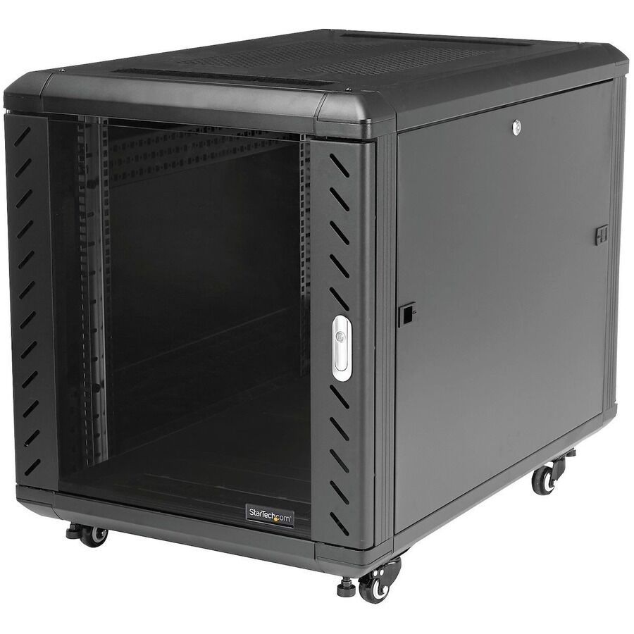 StarTech.com 4-Post 12U Server Rack Cabinet, 19" Data Rack Cabinet for Computer / IT Equipment, Home Network Rack, Half Height Server Rack - 4-Post 12U 19" server rack enclosure w/ adjustable mounting depth - EIA/ECA-310-E Compliant - 12U data cabinet ships flat-packed - 28.9in (73,4 cm) in height; 1764lb (800kg) weight capacity - Lockable & removable door; Vented top allowing airflow