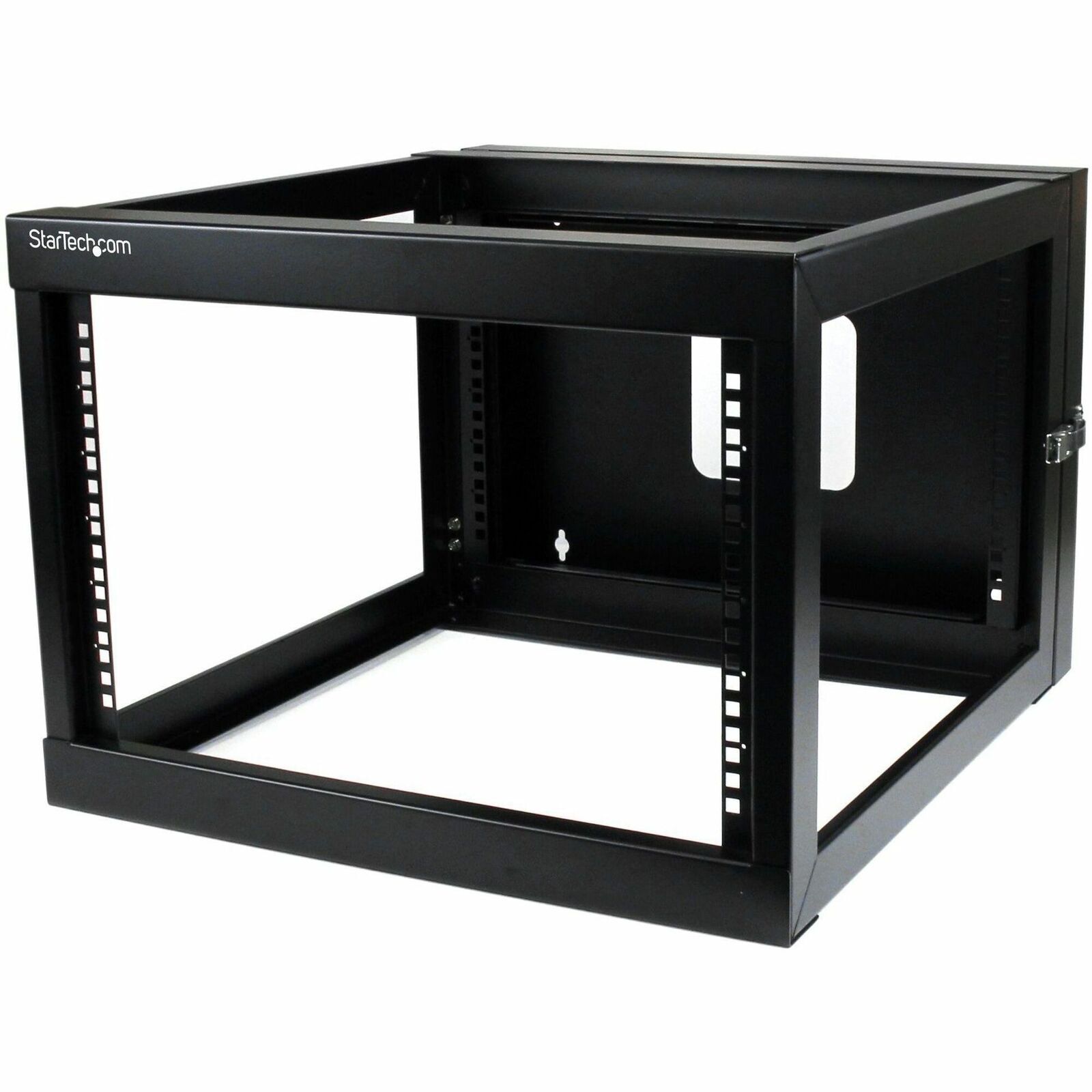 The 6U wallmount rack offers a 4 post design for additional support of your equipment, storing a maximum weight capacity of 49kg (110lbs) with a maximum mounting depth of 19.8inch (50.2cm). Constructed of high-quality SPCC cold-rolled steel for strength and durability, the open frame wallmount server rack allows for maximum airflow, and ships complete with all of the rack screws and cage nuts required to mount your equipment, saving the expense of purchasing them separately.