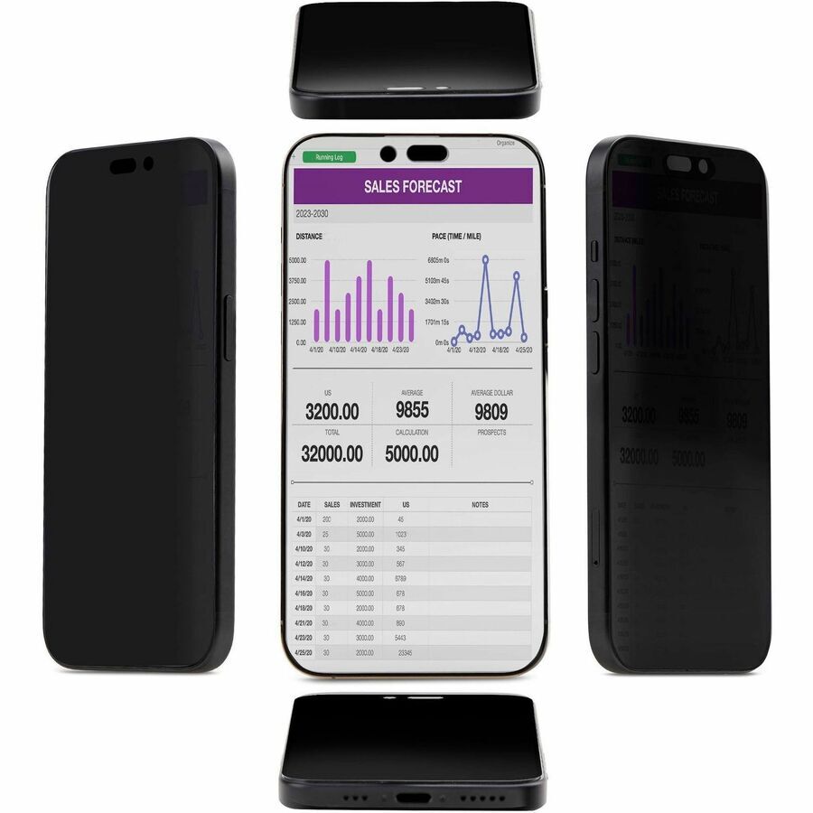 The security filter ensures optimal privacy in portrait or landscape orientations when viewed beyond 30° from the center, covering a total visible area of 60°. It supports touchscreen input and gestures, preserving the interactive experience of an iPhone while maintaining the confidentiality of on-screen content.
