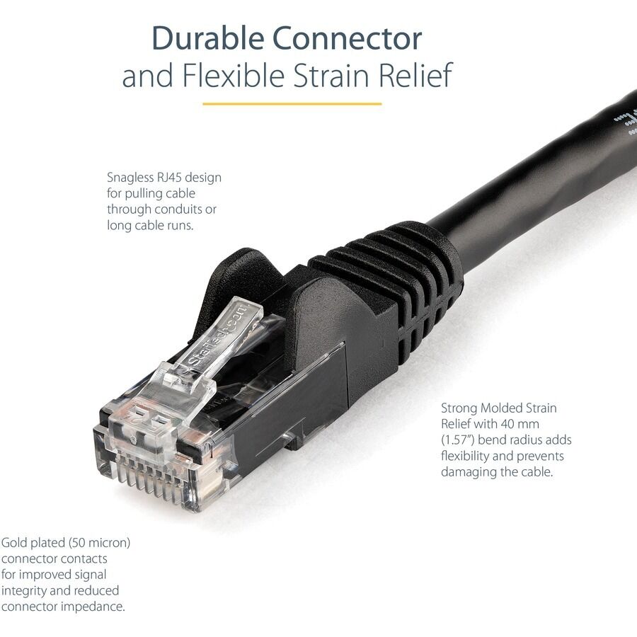 StarTech.com 50cm CAT6 Ethernet Cable - Black Snagless Gigabit - 100W PoE UTP 650MHz Category 6 Patch Cord UL Certified Wiring/TIA - First End: 1 x RJ-45 Network - Male - Second End: 1 x RJ-45 Network - Male - 6 Gbit/s - Patch Cable - Gold Plated Contact - 24 AWG - Black