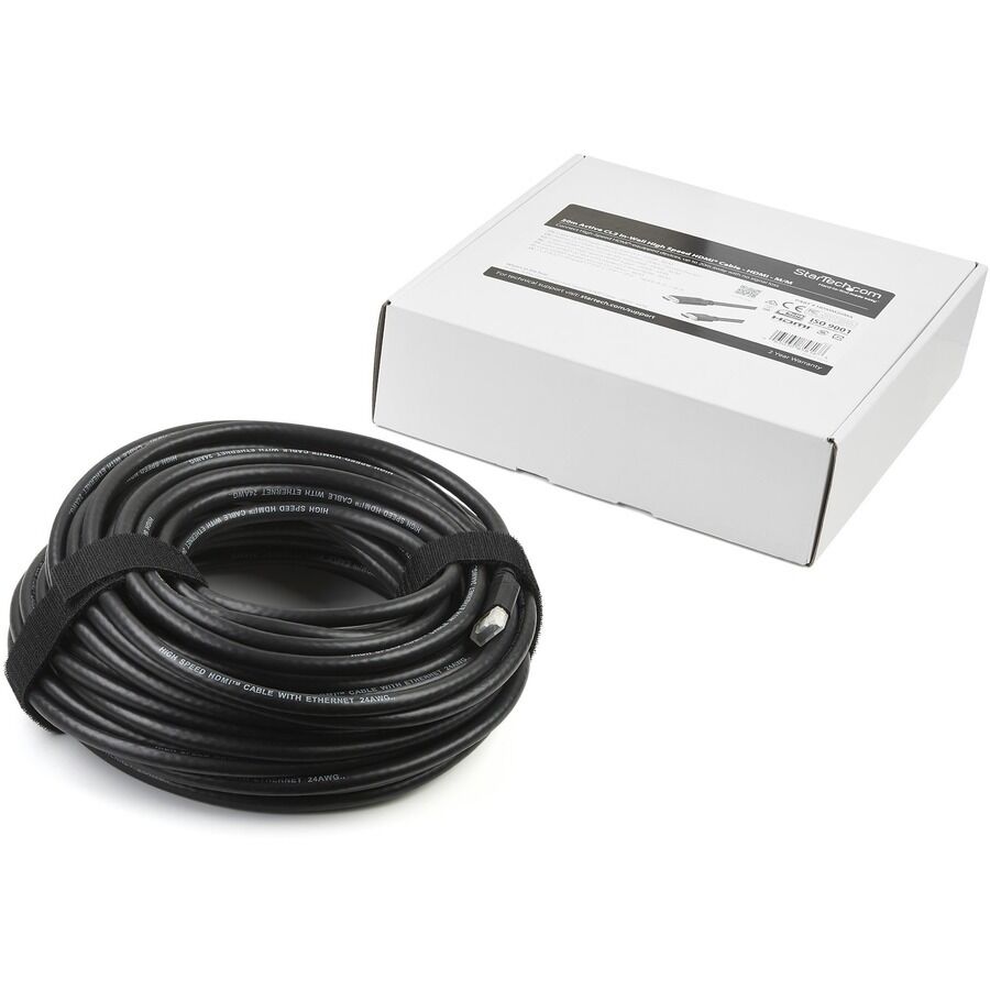 StarTech.com 66ft (20m) Active HDMI Cable, 4K 30Hz UHD High Speed HDMI 1.4 Cable with Ethernet, CL2 Rated HDMI Cord for In-Wall Install - First End: 1 x 19-pin HDMI Digital Audio/Video - Male - Second End: 1 x 19-pin HDMI Digital Audio/Video - Male - Shielding - Gold Plated Connector - CL2 - 28 AWG - Black