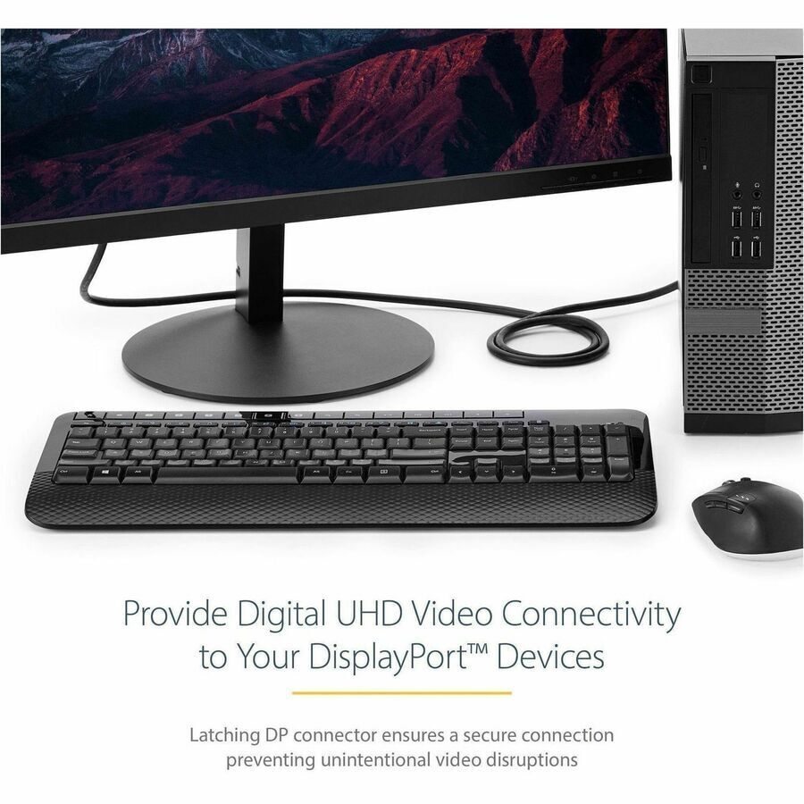 StarTech.com 6ft (2m) DisplayPort 1.2 Cable, 4K x 2K UHD VESA Certified DisplayPort Cable, DP Cable/Cord for Monitor, w/ Latches - First End: 1 x 20-pin DisplayPort 1.2 Digital Audio/Video - Male - Second End: 1 x 20-pin DisplayPort 1.2 Digital Audio/Video - Male - 21.6 Gbit/s - Supports up to4096 x 2160 - Shielding - Gold Plated Connector - CMG - 28 AWG - Black