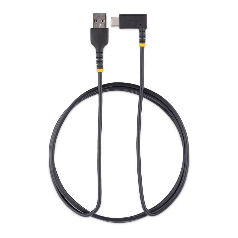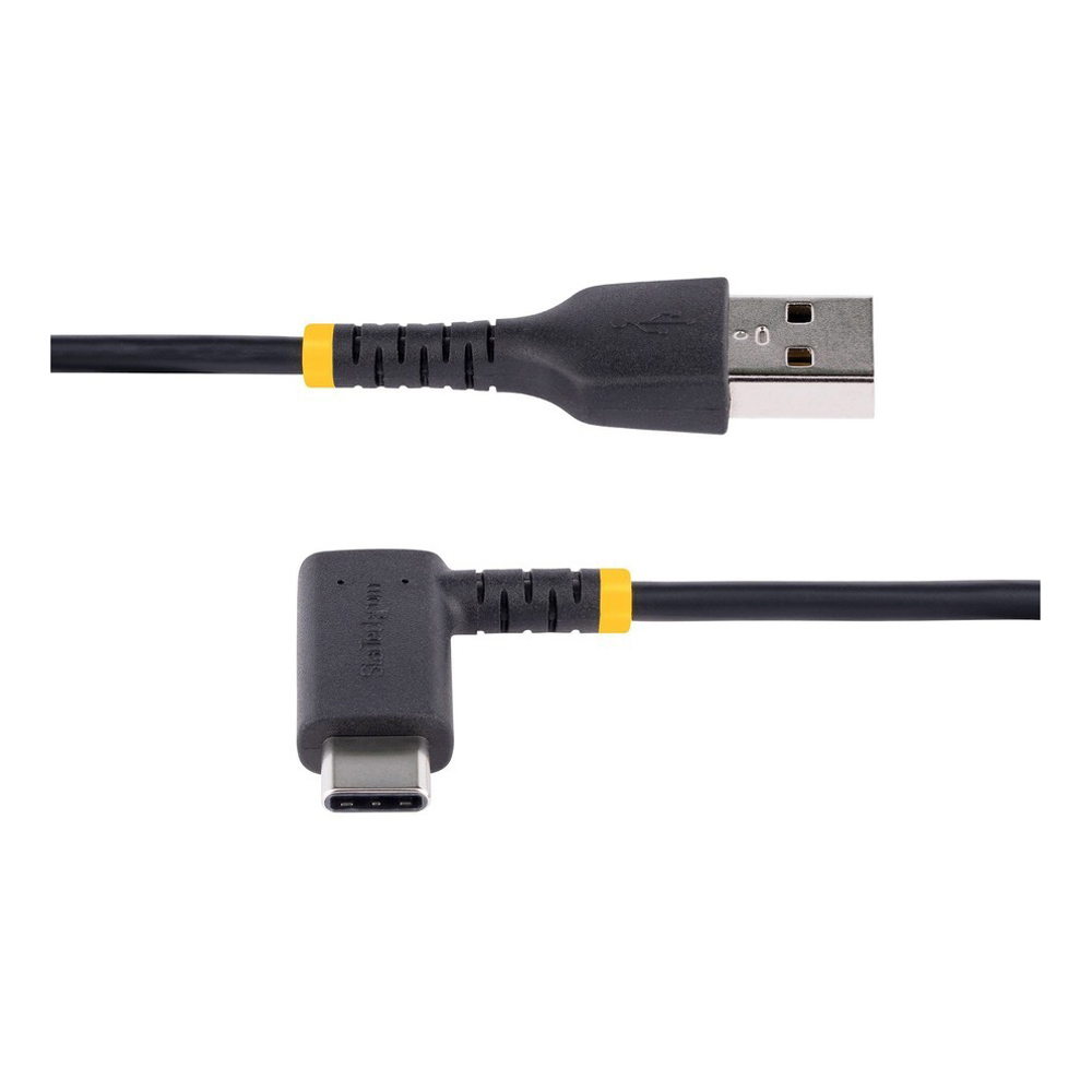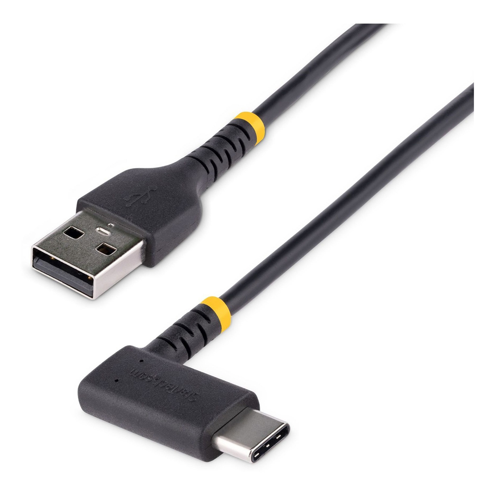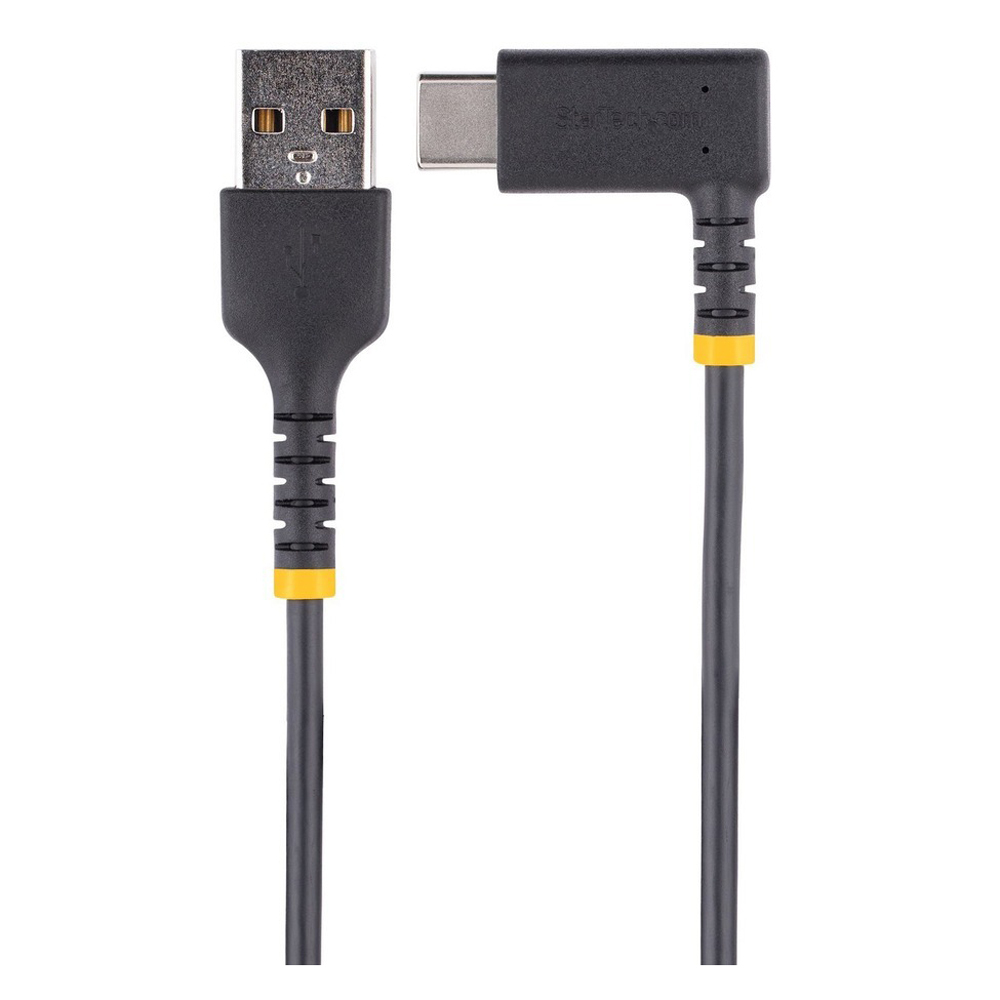 StarTech.com 6tf (2m) USB A to C Charging Cable Right Angle, Heavy Duty Fast Charge USB-C Cable, Durable and Rugged Aramid Fiber, 3A - 6ft (2m) USB A to right-angled USB type-C charging cable for convenient peripheral connection - Heavy duty male-to-male USB 2.0 cord with extended strain reliefs capable of 10000 bend cycles at 180 degree angle - Up to 3A for fast charging