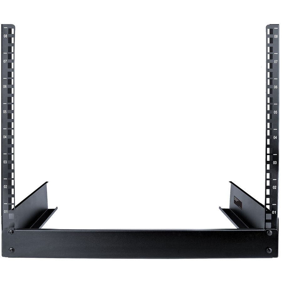 StarTech.com 8U 19" Desktop Open Frame Rack, 2-Post Free-Standing Network Rack, Switch/Patch Panel/AV/IT Equipment, 110lb / 50kg capacity - Store your lightweight rack-mountable equipment in this 2-post rack - 2-post open frame rack - 2 post server rack - 8U 2 post open frame rack - Rack cabinet - Desk top rail rack - Open frame server rack - Desktop 2-post rack - Desktop server rack