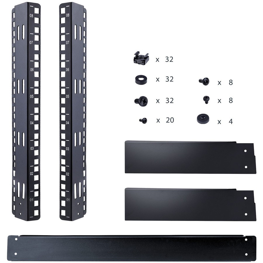 The free standing network rack is easy to assemble and includes a pack of 20 M5 screws and cage nuts. If you're looking for other sizes, StarTech.com also offers 4U and 12U 2-post desktop computer racks.