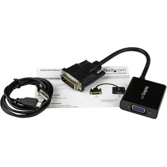 StarTech.com DVI-D to VGA Active Adapter Converter Cable - 1080p - 1 x 25-pin DVI-D Digital Video - Male - 1 x 15-pin DB-15 Video - Female, 1 x 5-pin Micro USB Type B - Female - Black