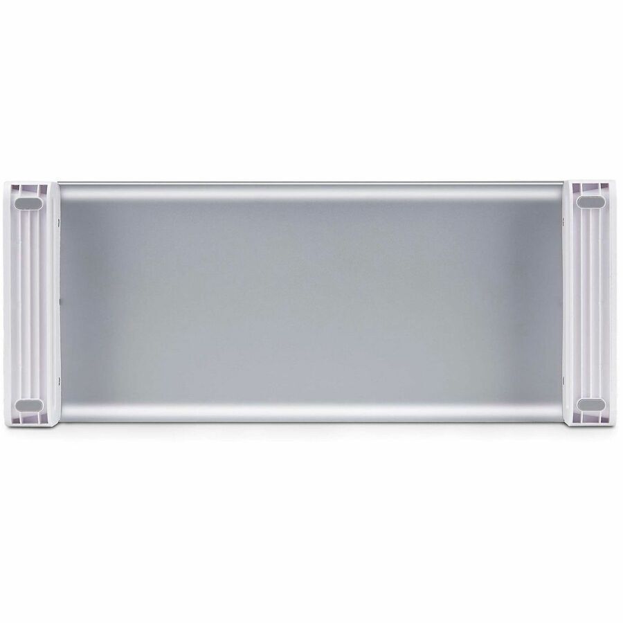 Fixed-height riser (3.5in - 90.5mm) accommodates desktop monitors or laptops up to 33lb (15kg). Free up desk space and conveniently store keyboard, mouse, or accessories underneath when unused. The total usable area is 7.3x21in (186x534mm).