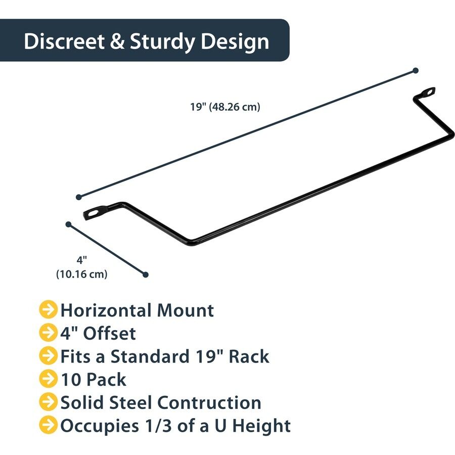 StarTech.com Horizontal Cable Lacing Bars with 4 in. Offset for Racks - Horizontal Cable Manager - 10 Pack