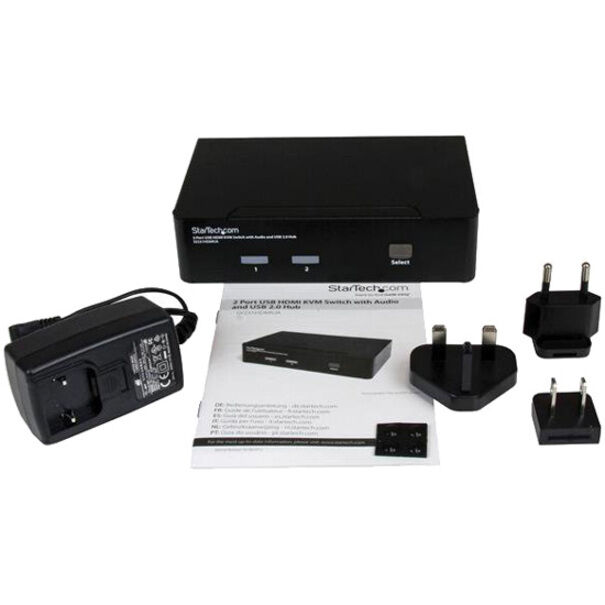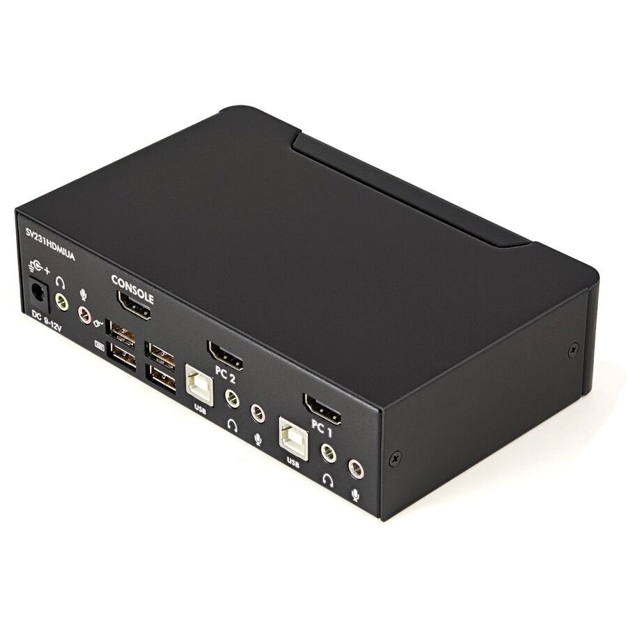 StarTech.com KVM Switchbox - TAA Compliant - 2-port USB HDMI KVM Switch lets you control two USB-enabled multimedia computers or devices with HDMI video interfaces, using a single peripheral set/console (USB keyboard, mouse, monitor, speakers and microphone)