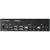 The SV231HDMIUA 2-port USB HDMI® KVM Switch lets you control two USB-enabled multimedia computers or devices with HDMI video interfaces, using a single peripheral set/console (USB keyboard, mouse, monitor, speakers and microphone).
