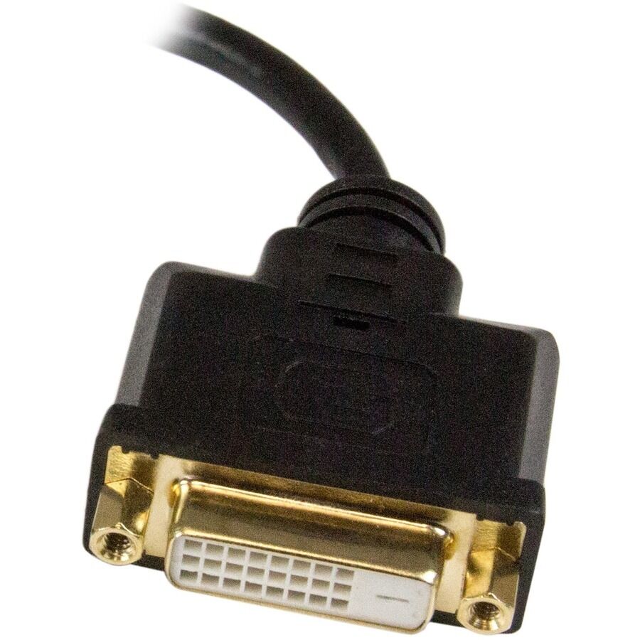 StarTech.com Micro HDMI to DVI Adapter, Micro HDMI to DVI Converter, Micro HDMI Type-D Device to DVI-D Monitor/Display, 8in (20cm) Cable - First End: 1 x 19-pin Micro HDMI Digital Audio/Video - Male - Second End: 1 x 25-pin DVI-D (Single-Link) Digital Video - Female - 3.9 Gbit/s - Supports up to1920 x 1200 - Shielding - Gold Plated Connector - Gold Plated Contact - 30/32 AWG - Black