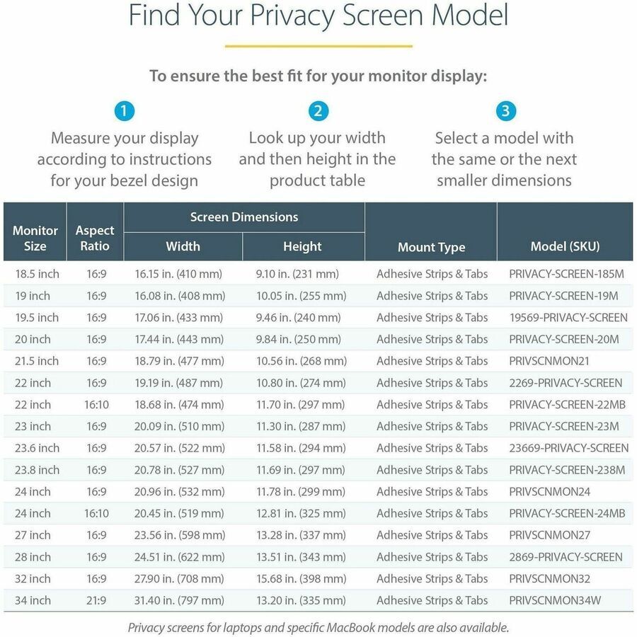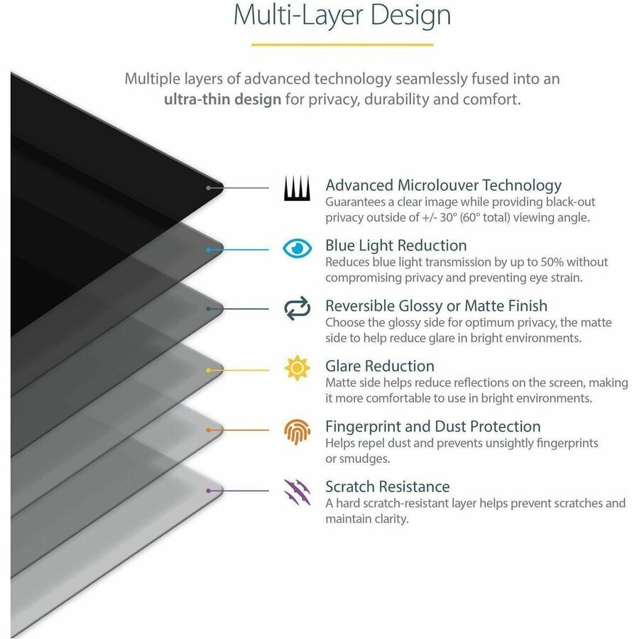 StarTech.com Monitor Privacy Screen for 32 inch Display, Widescreen Computer Monitor Security Filter, Blue Light Reducing Screen Protector - 32 inch widescreen monitor privacy screen for security outside +/-30 degree viewing angle to keep data confidential - 2 mount options w/adhesive strips - Anti-glare matte or glossy computer privacy filter - 40-51% Blue Light Reducing Screen Protector