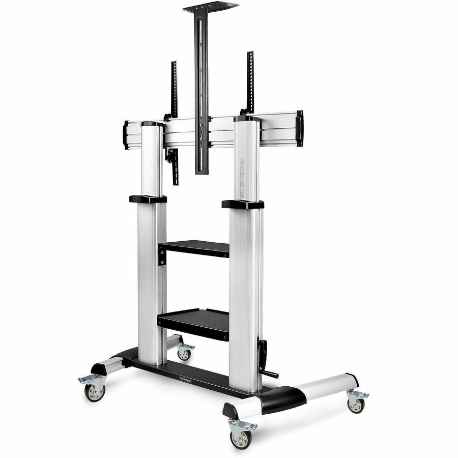 StarTech.com Rolling TV Cart/Stand On Wheels, For 60-100inch Flat Screens and 220lb, Height Adjustable Mobile Trolley Mount/Portable Stand - VESA-compatible, heavy-duty mobile TV stand/trolley supports flat-screen TVs from 60-100in and up to 220lbs - Rolling cart features crank handle for height adjustment 47.2-65in (from the floor) w/mounted TV - Large wheels and handles for movement