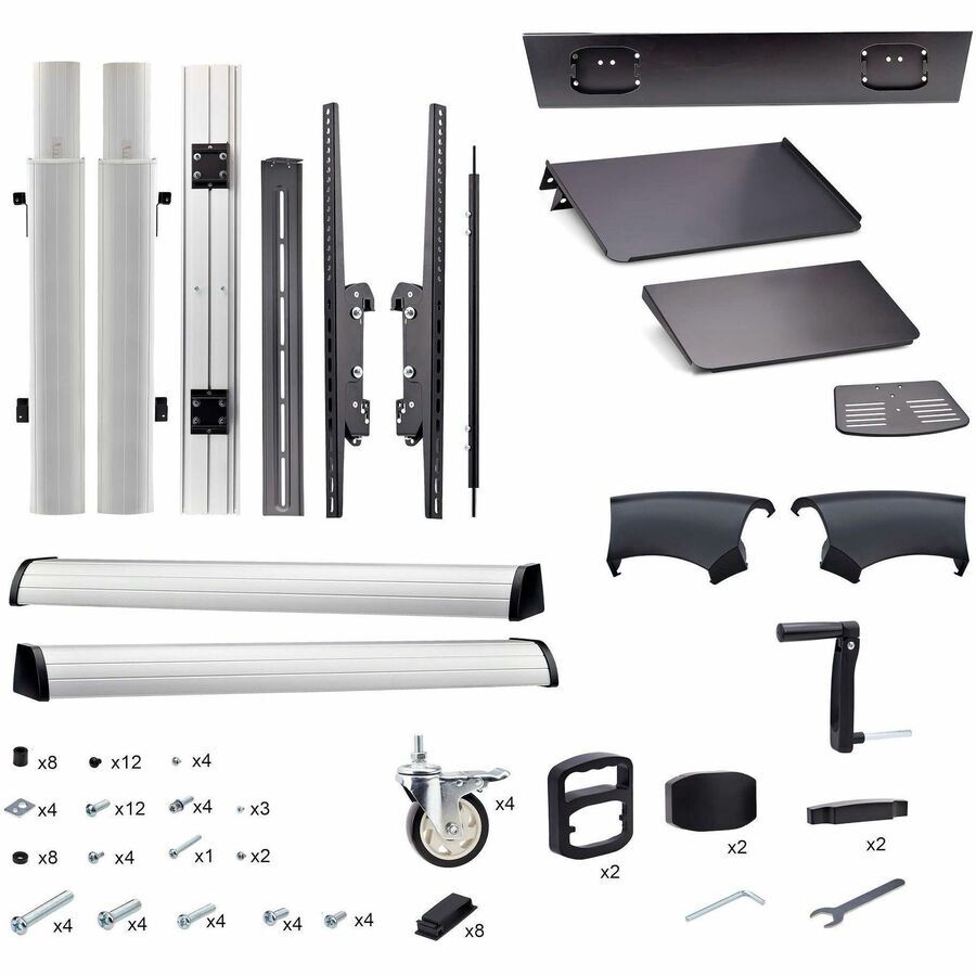 - MOBILE PRESENTATION CART: Silver rolling TV trolley moves a large display with its equipment within offices, trade shows, and educational environments; Integrated cable management keeps cables organized for clutter-free installation and seamless mobility