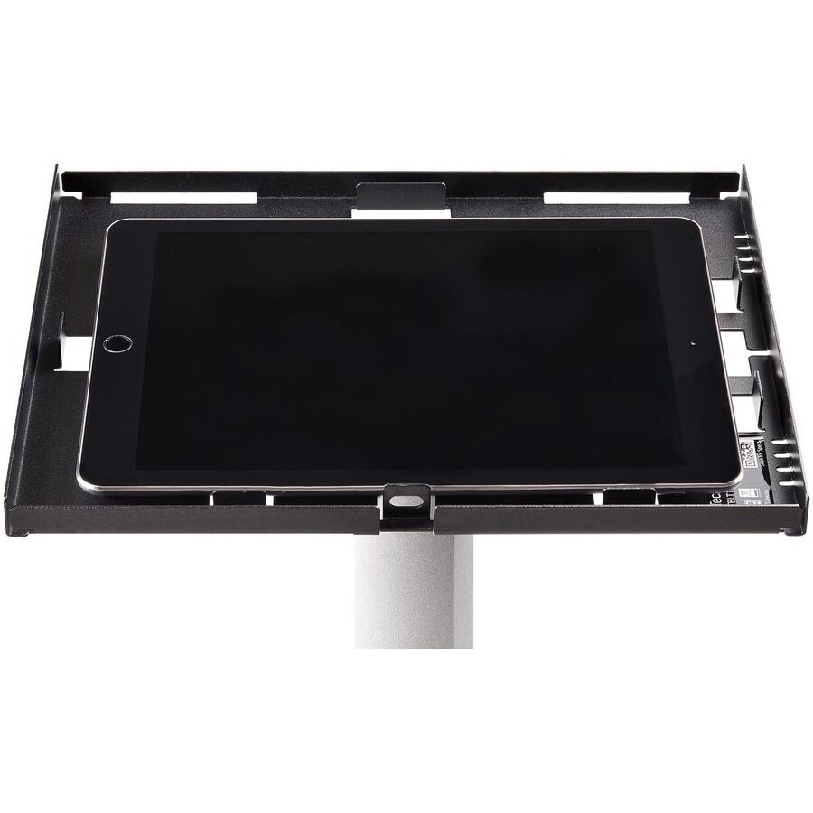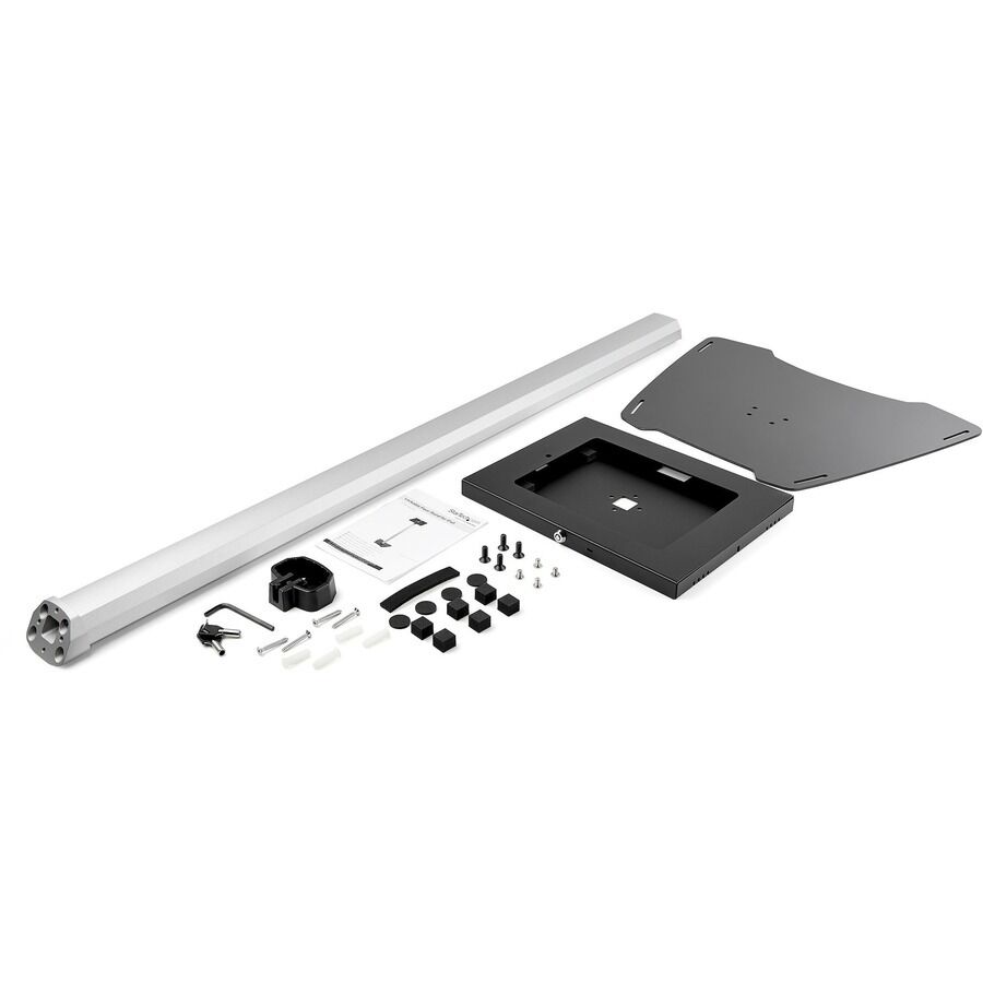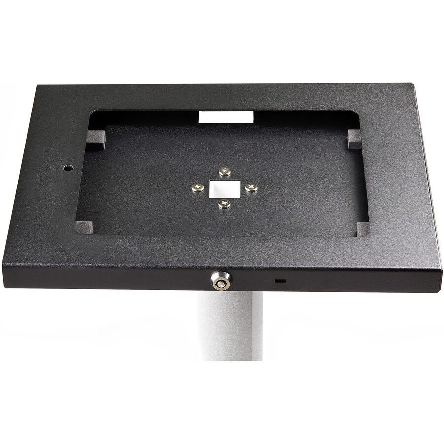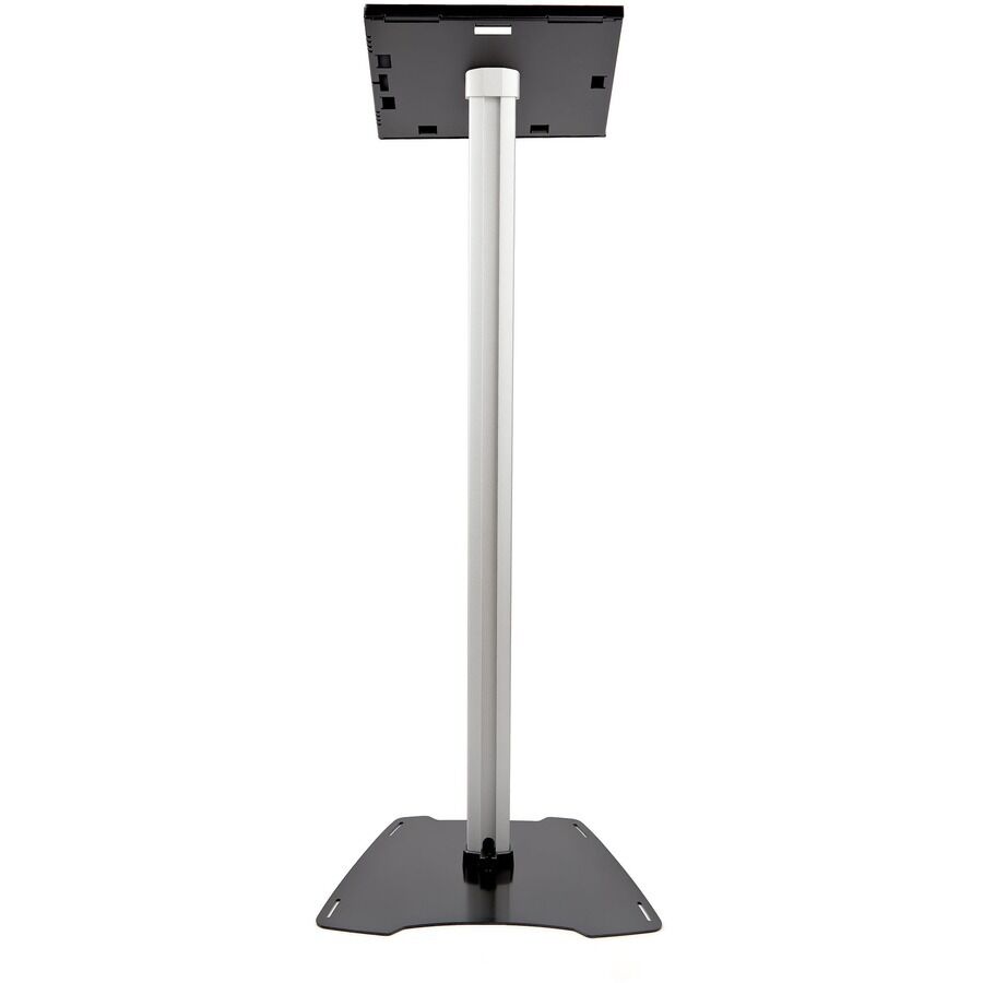 StarTech.com Secure Tablet Floor Stand - Security lock protects your tablet from theft and tampering - Supports iPad and other 9.7" tablets - Fixed Height of approx. 42" (1060 mm) - Built-in cable management - Covered Home button - TAA compliant - Thread the tablet's charge cable through the pillar-style stand - Up to 24.6 cm (9.7") Screen Support - 1.50 kg Load Capacity - 105.9 cm Height x 40.9 cm Width - Floor - Plastic, Steel, Aluminium - Black, Silver