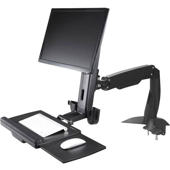 This sit-stand monitor arm transforms your desk or tabletop into an ergonomic workstation. The monitor arm features a keyboard tray and easy height adjustment that lets you alternate between sitting and standing, without interrupting your workflow. Move your workstation up or down, left or right, to meet your needs.