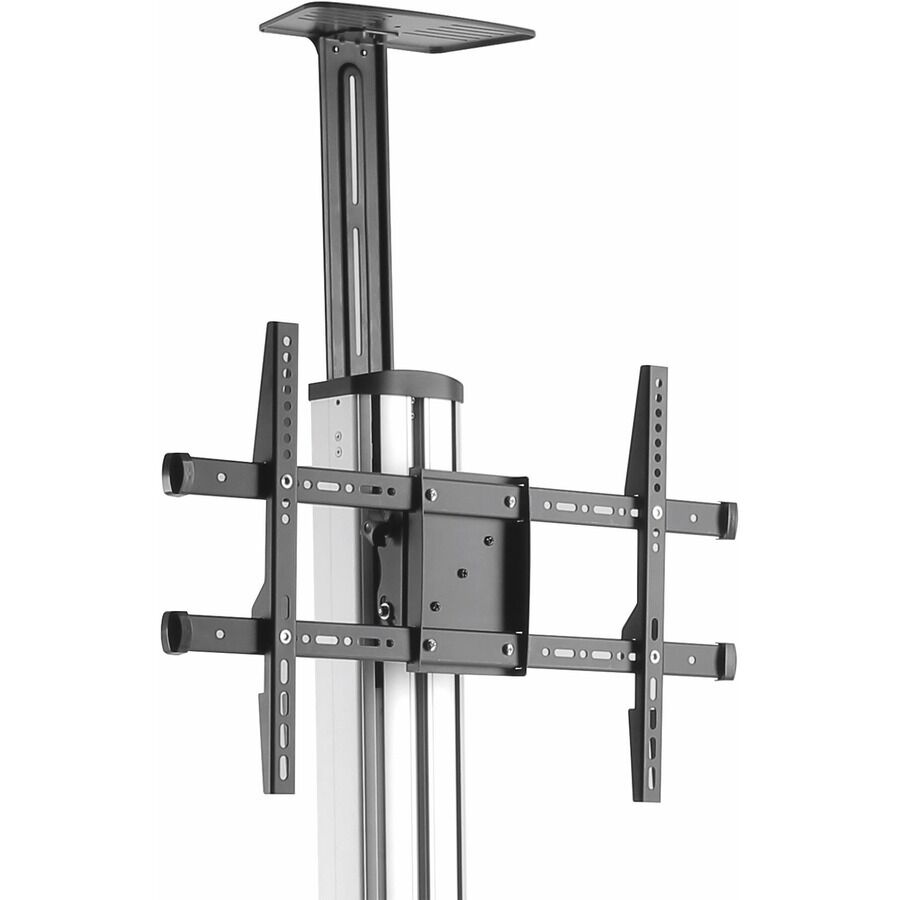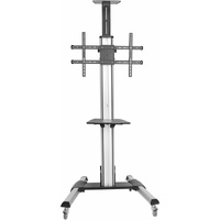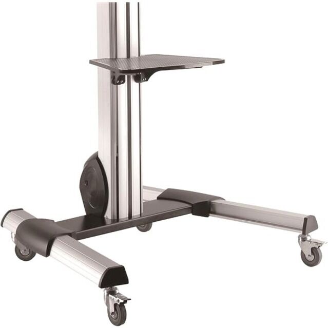StarTech.com TV Cart - For 32" to 75" Displays - AV Cart - Height Adjustable - Lockable Wheels - Flat Screen TV Cart - Media Cart on Wheels - 1 Shelf - 40.10 kg Capacity - 4 Casters - Steel, Aluminium - 701 mm Length x 828 mm Width x 2141.2 mm Height - Black, Silver - For 1 Devices