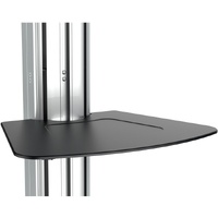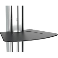 This portable TV cart makes it easy to create a mobile media center, providing a convenient and cost-effective way to share A/V equipment between rooms. Engineered with a sleek and sturdy design, the TV cart provides a secure mount for a 32" to 75" TV (with maximum weight of 88 lb./40 kg) and a removable multi-media shelf for placing your computer, media player or keyboard. It also includes a camera shelf for web-conferencing.
