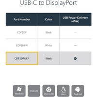 StarTech.com USB C to DisplayPort Adapter with 60W Power Delivery Pass-Through - 4K 60Hz USB Type-C to DP 1.2 Video Converter w/ Charging - 1 x 24-pin USB Type C - Male - 1 x 20-pin DisplayPort Digital Audio/Video - Female - Black