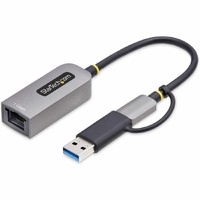 StarTech.com USB-C to to Ethernet Adapter with USB-A Dongle, 10/100/1000Mbps, USB 3.0 to Gigabit Network Adapter, Windows/macOS/Linux - Add an Ethernet port to a USB-C or USB-A computer supporting up to Gigabit speeds w/autonegotiation for 10/100/1000Mbps BASE-T Networks; Built-in 6in/15cm cable; Status LEDs; Bus powered; Windows/MacOS/iOS/ChromeOS; Realtek RTL8153B; 9K Jumbo Frames