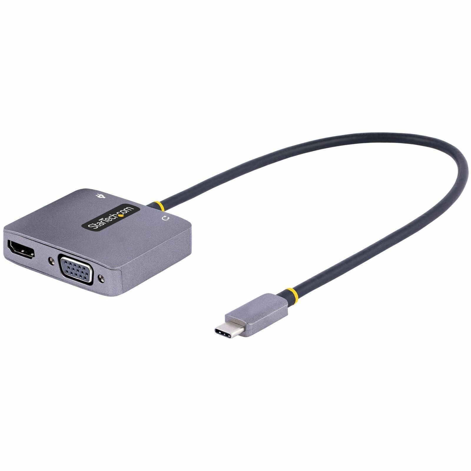 StarTech.com USB C Video Adapter, USB C to HDMI VGA Multiport Adapter, 3.5mm Audio Output, 4K 60Hz HDR, 100W PD 3.0, USB C Display Adapter - 1 x 24-Pin USB Type C - Male - 1 x 24-Pin Powered USB Type C - Female, 1 x 19-Pin HDMI 2.0b Digital Audio/Video - Female, 1 x 15-Pin HD-15 VGA- Female, 1 X Mini-phone Stereo Audio - Female - 3840 x 2160 Supported - Grey